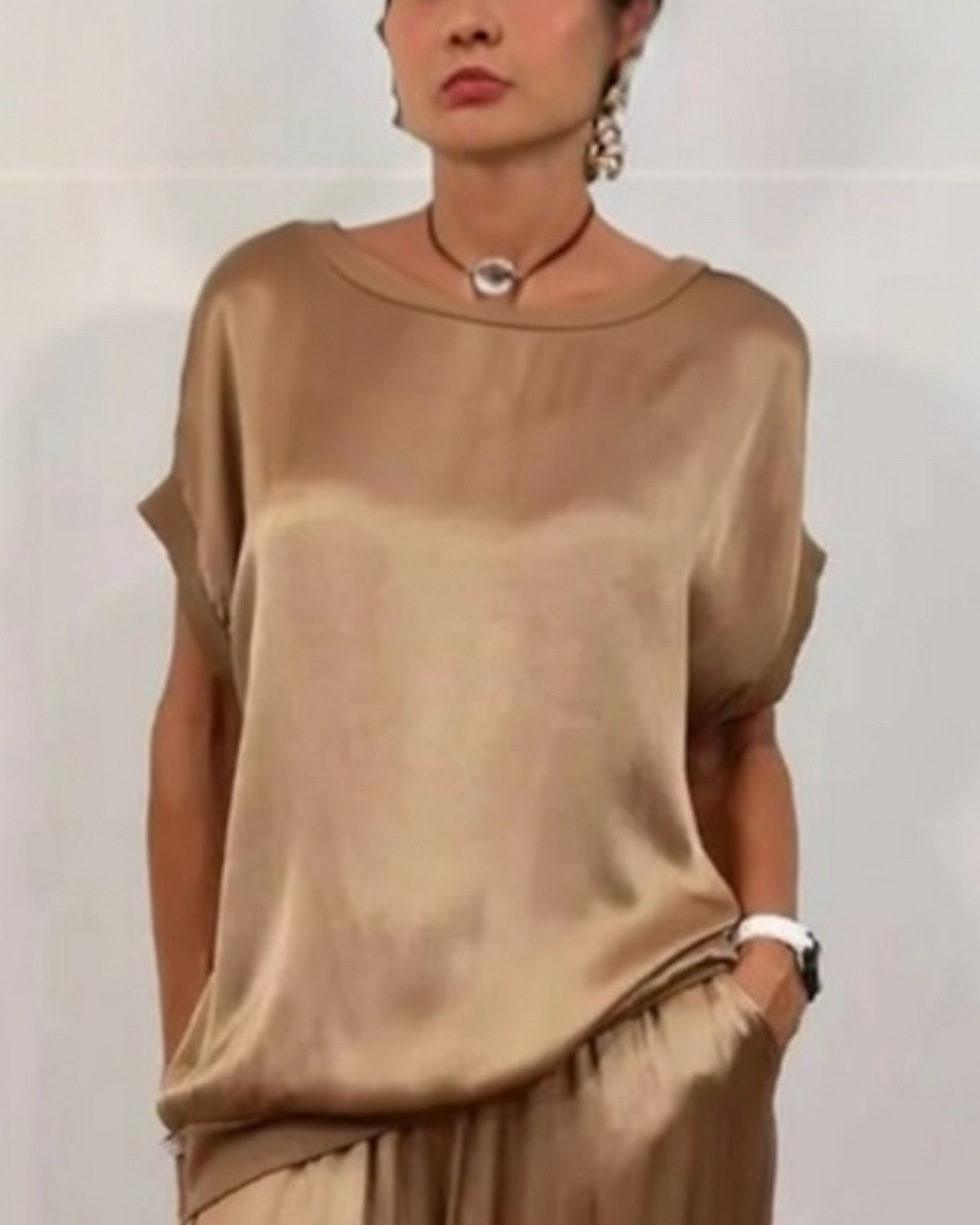 Slip into luxury with this satin lounge top that blends comfort and elegance in one. The relaxed-fit top pairs perfectly with wide-leg pants, giving you an effortlessly chic look whether at home or out on the town. Lightweight and silky smooth, it drapes beautifully on every body type while keeping you stylish and comfortable. Elevate your off-duty wardrobe with this must-have top—because lounging has never looked this good.