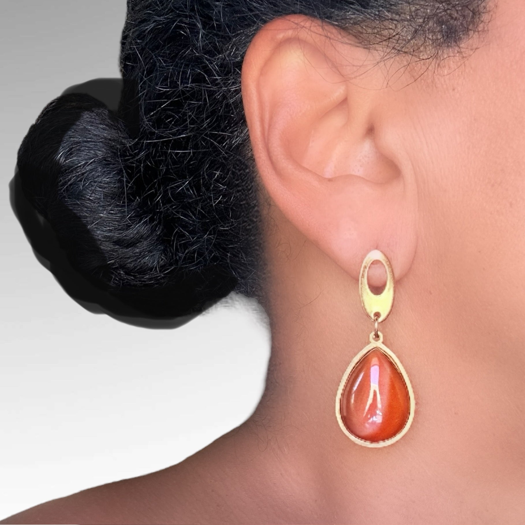 Unleash the power of confidence with the GEMI Earrings, featuring radiant carnelian gemstones set in a sleek gold-plated design. These statement earrings exude warmth, vitality, and sophistication, making them the perfect addition to any jewelry collection. Whether you’re elevating a casual look or complementing an evening ensemble, the GEMI Earrings bring an effortless touch of luxury. Let your style shine with the energy and passion of carnelian —- because bold accessories make unforgettable impressions. ✨