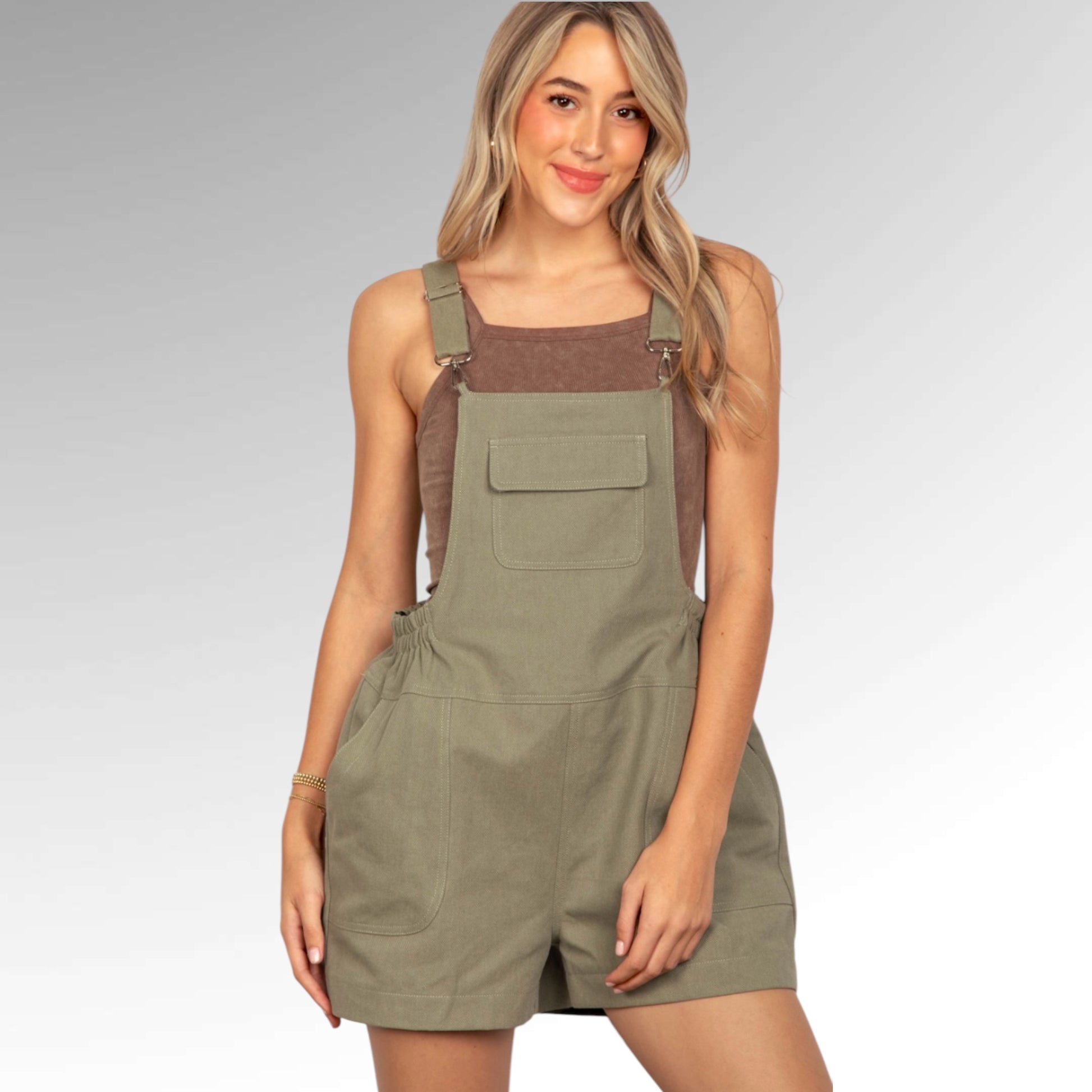 Cute, casual, and effortlessly cool — these overall shorts are a must-have for your laid-back wardrobe. Featuring adjustable straps, a front pocket detail, and an easy relaxed fit, these overalls are perfect for sunny days and weekend adventures. The durable fabric keeps you comfortable while the neutral tone makes styling a breeze. Throw them on over a tank or tee for an instant, on-trend outfit you’ll reach for again and again.