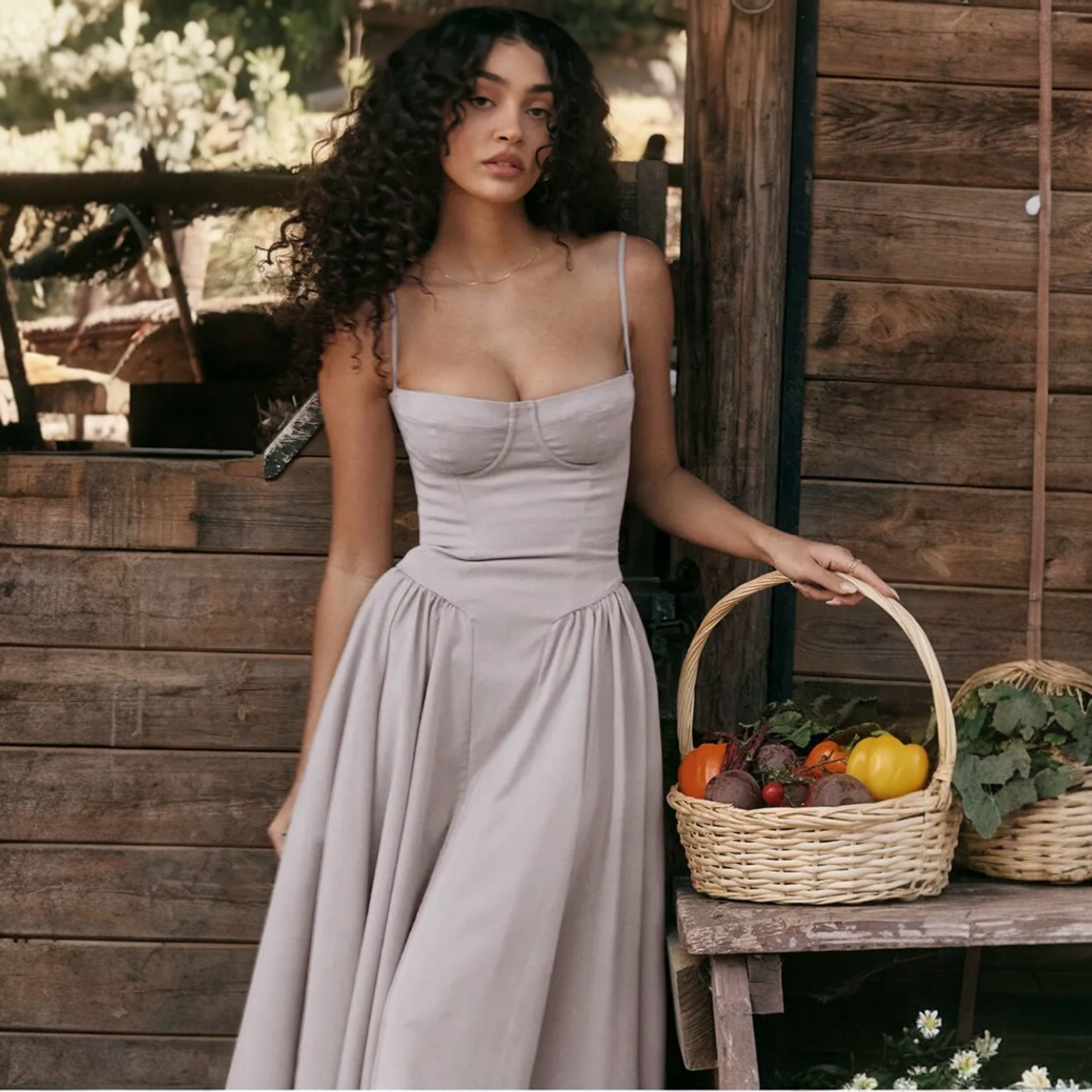 Romantic, timeless, and effortlessly elegant — this dress is made for your most dreamy moments. Featuring a flattering fitted bodice with delicate straps and a full, flowy skirt, it creates a silhouette that’s both feminine and graceful. Perfect for garden parties, date nights, or sunset strolls, this dress will have you feeling beautiful and confident. Just add simple jewelry and your favorite sandals for an effortlessly chic look.
