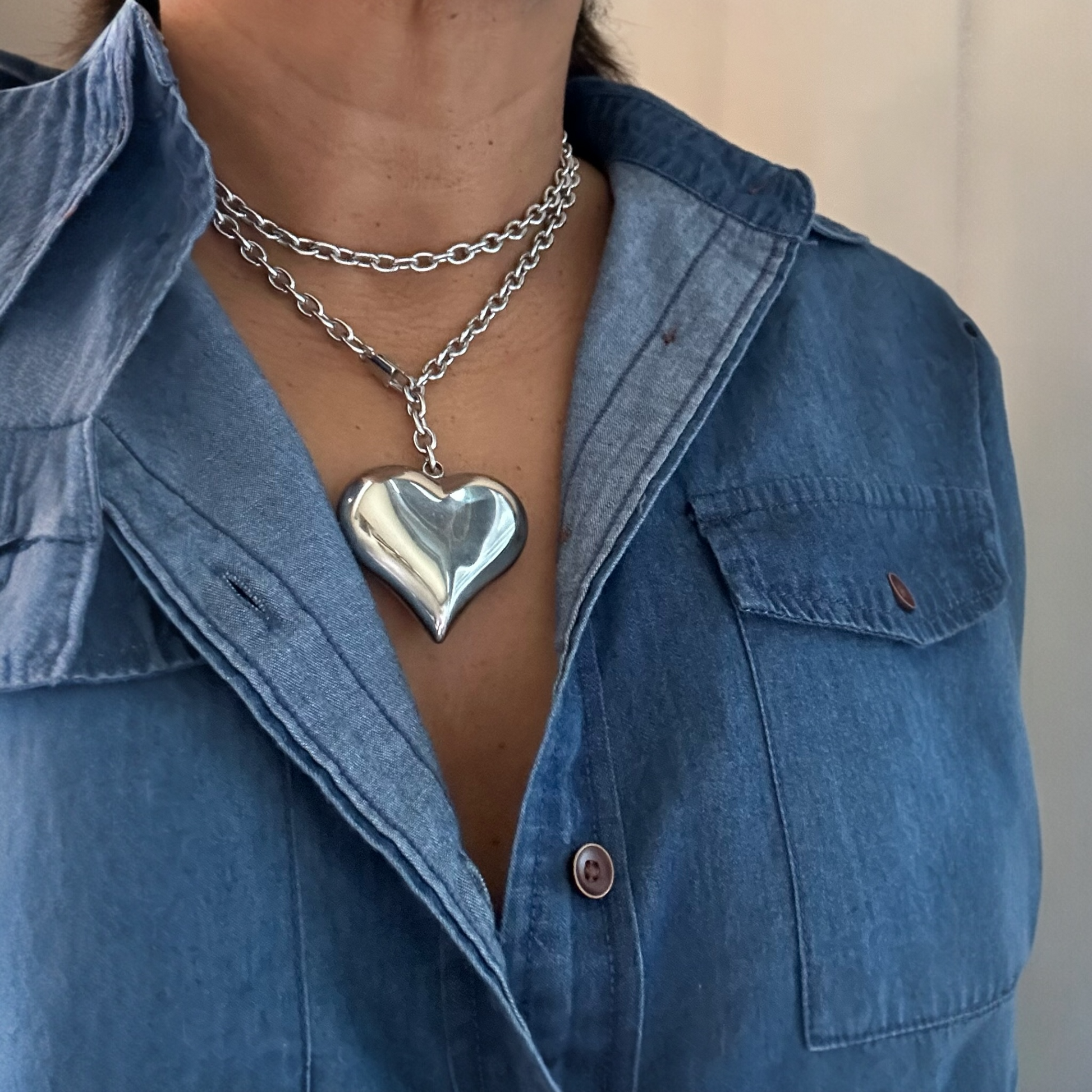 Fall in love with the NIKITA NECKLACE, a versatile heart pendant necklace that can be worn in multiple ways, including as a stylish belt. Available in both gold and silver, this necklace is the perfect accessory for any outfit.