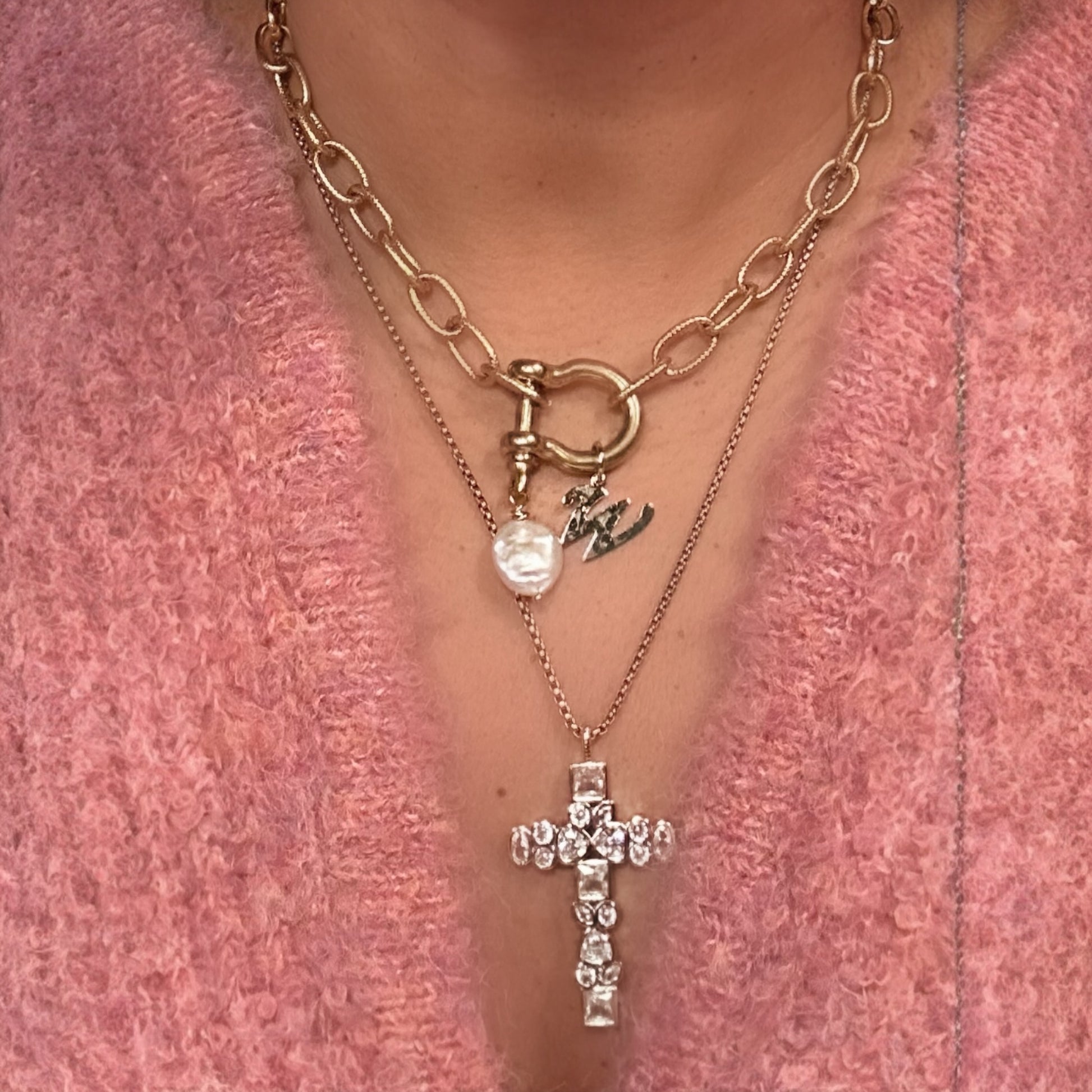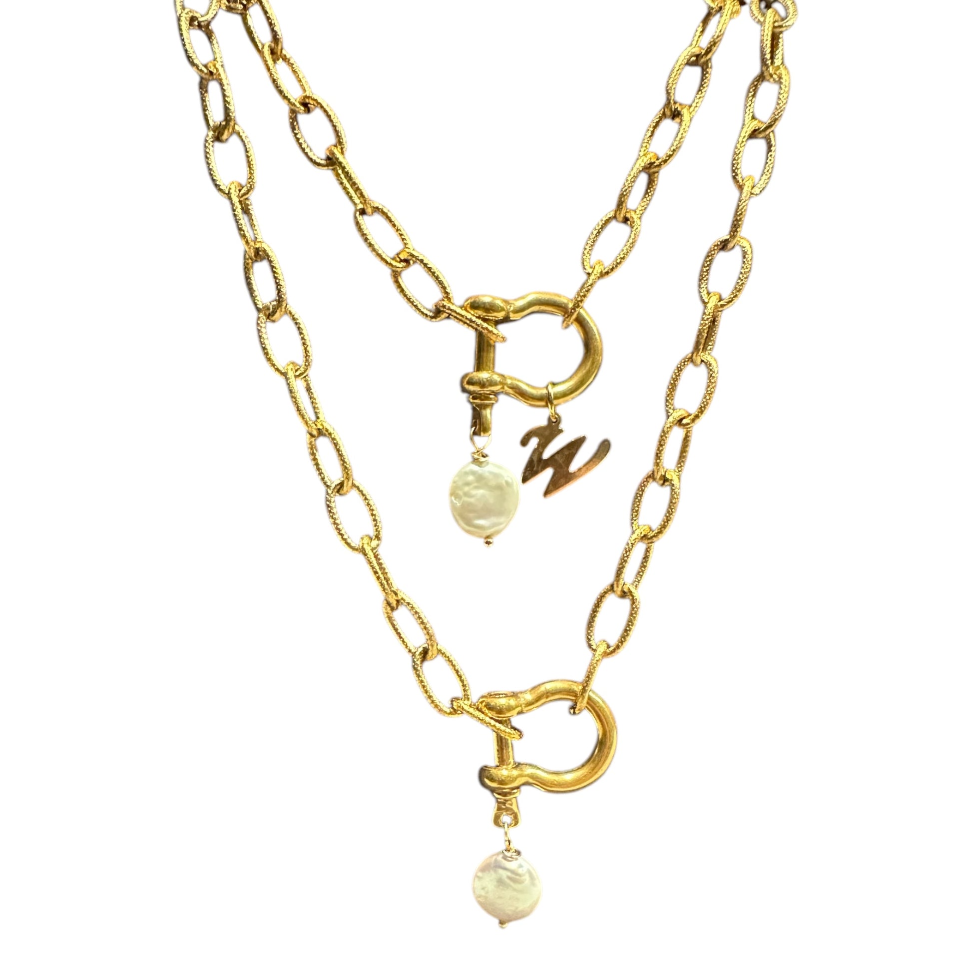 Discover the beauty and elegance of the ROXANNE NECKLACE. The stunning freshwater pearl has been carefully handpicked for its lustrous shine and round shape. Make it personal by adding your own initial charm. A perfect accessory to add a touch of sophistication to any outfit.