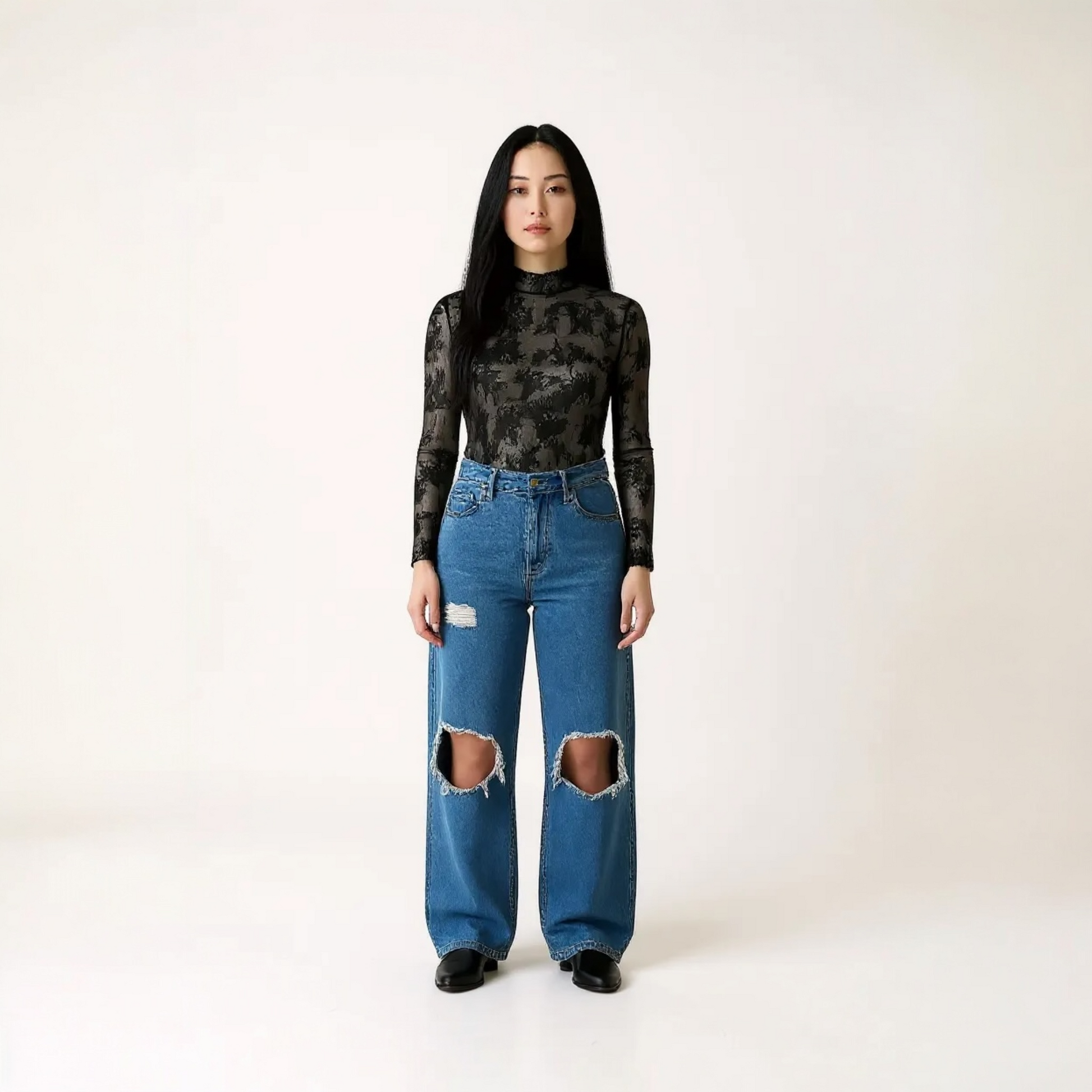 Turn heads with this sheer lace mock-neck top, designed to add instant sophistication to any outfit. Featuring chic thumbhole sleeves and a figure-flattering fit, it’s the perfect layering piece under blazers, camisoles, or dresses. Available in both khaki and classic black, this versatile top takes you effortlessly from day to night. Don’t miss out on this wardrobe essential—style it your way and make it yours today.
