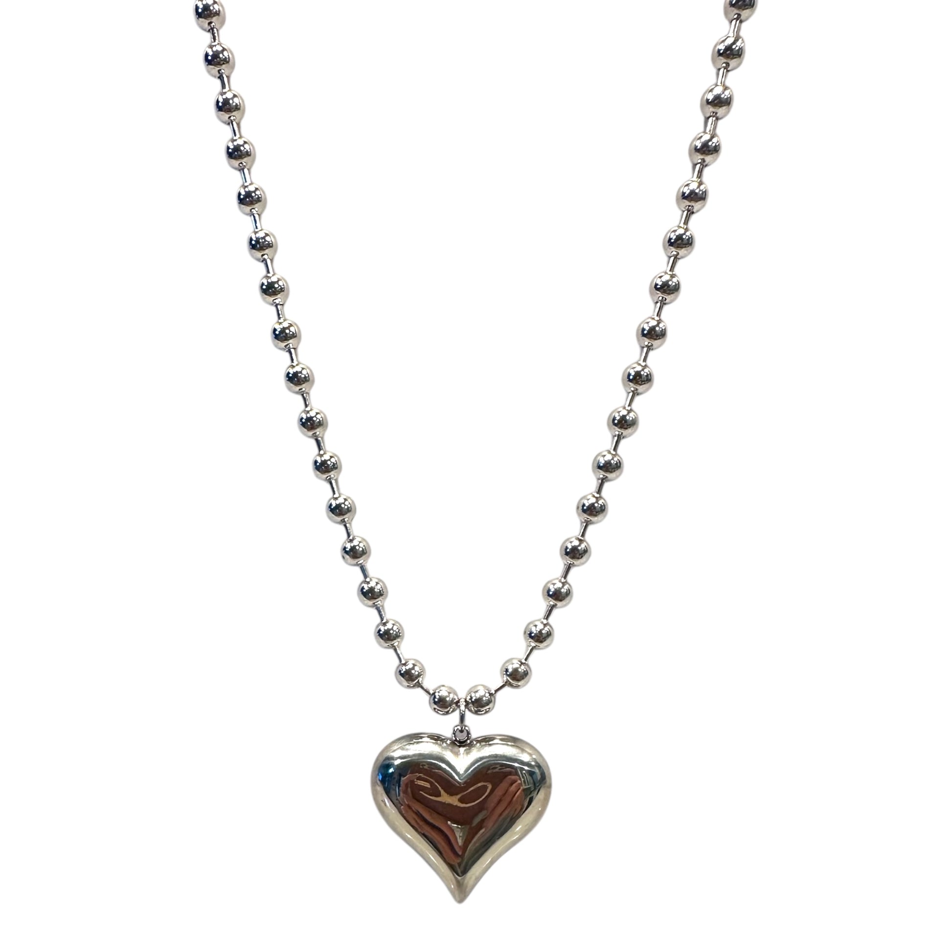 Elevate your style with this exquisite heart pendant necklace, crafted from polished silver-tone ball chain for a timeless, elegant look. The bold, glossy heart pendant radiates sophistication, making it the perfect statement piece for any occasion. Whether paired with casual or formal attire, this necklace is a chic way to express your love for standout accessories.