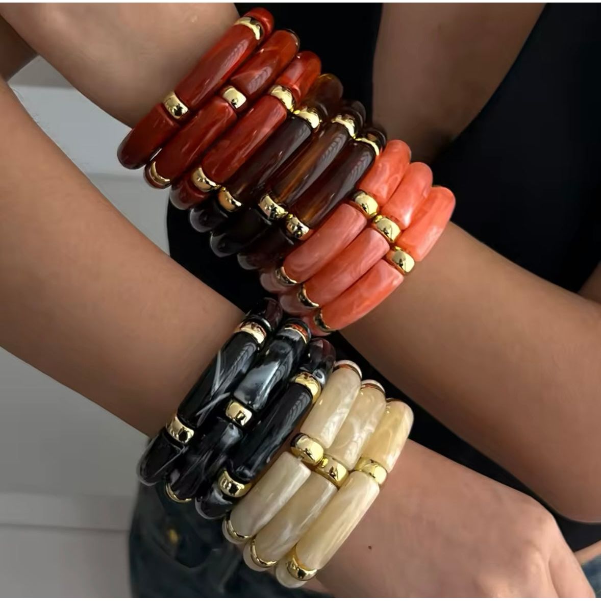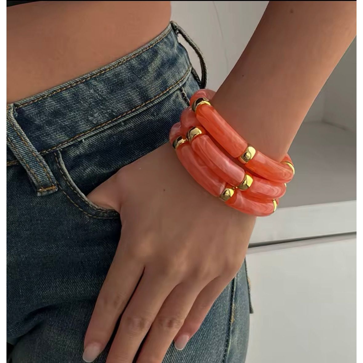 Turn heads with our bold and beautiful Chunky Luxe Bangles. These glossy, marbled bracelets are accented with luxe gold-toned spacers, creating a statement piece that effortlessly blends modern edge with timeless style. Available in a range of rich colors—cream, onyx, coral, ivory, and brick red—each bangle is designed to stack or shine solo. Whether you’re dressing up denim or elevating a night-out look, these bracelets are the perfect finishing touch. Add one (or more) to your collection and let your wrists do the talking.